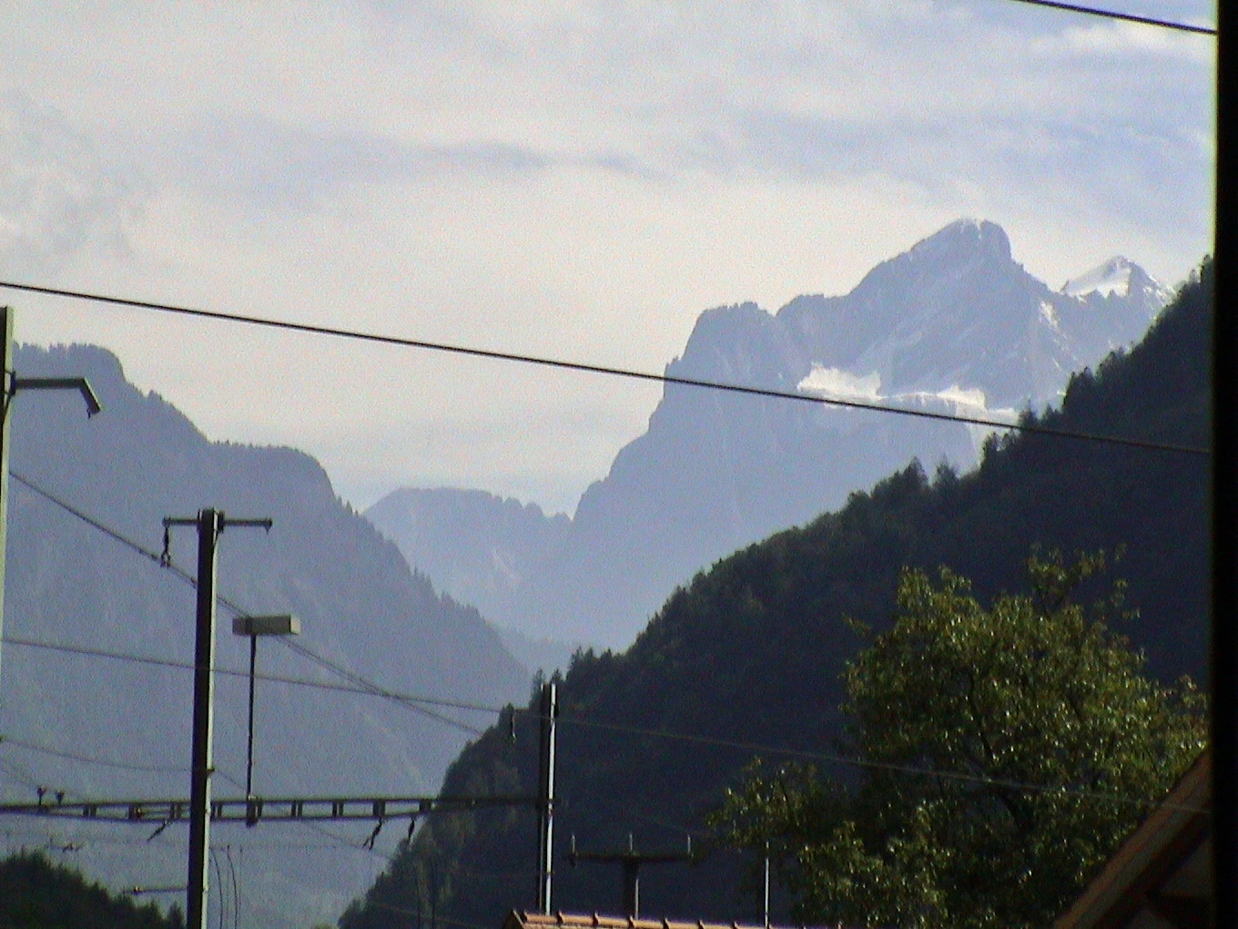 A glimpse of Wetterhorn and Mittelhorn as we approach Zweilütschinen.