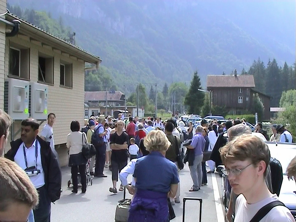 Plan changes at Zweilütschinen: bus to Lauterbrunnen past a broken-down train.