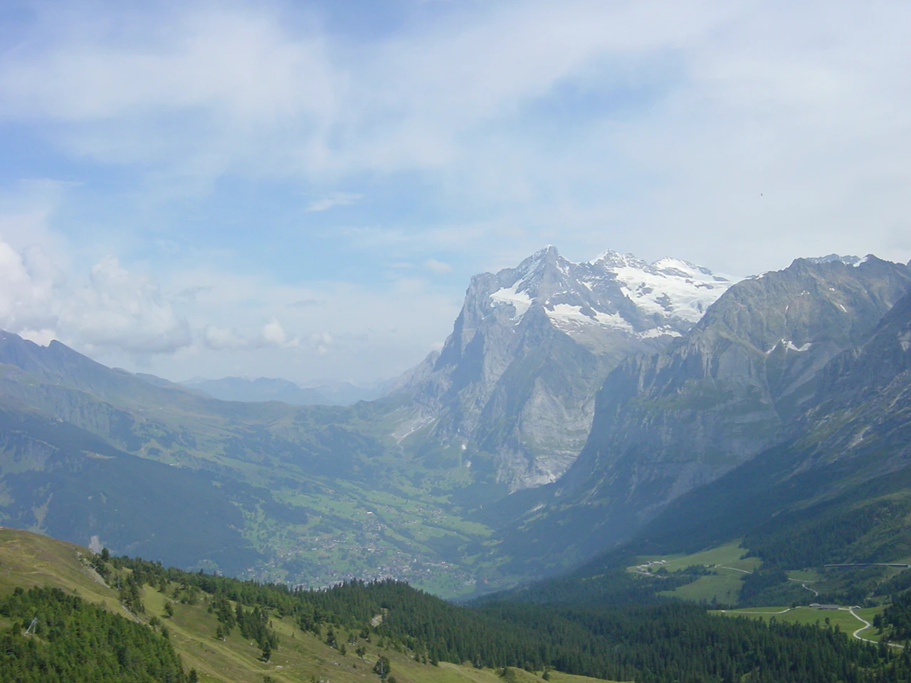 Grindelwald, with Wetterhorn and Mittelhorn, from the higher Grindelwaldblick viewpoint, Kleine Scheidegg.