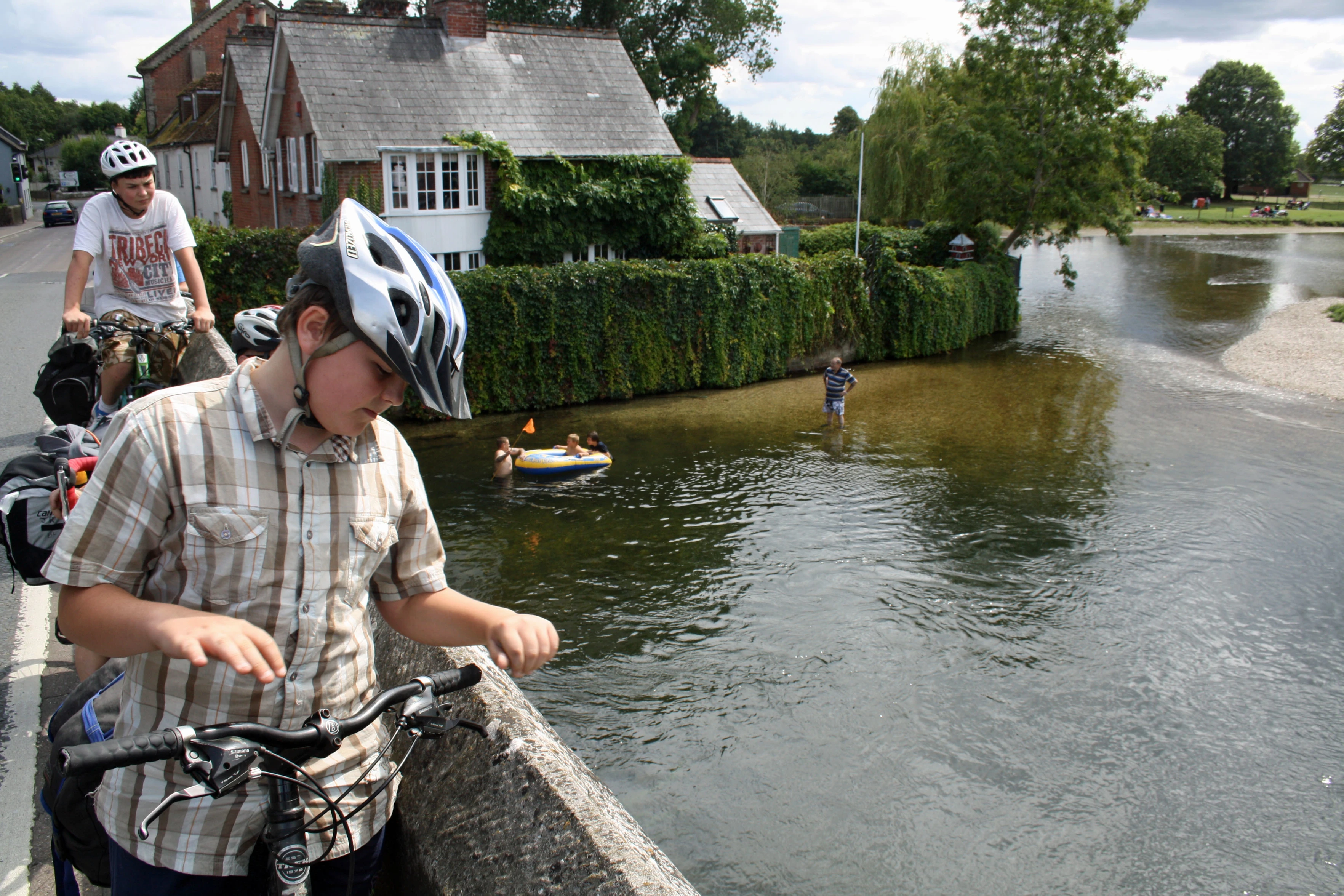 The group on Bridge Street, Fordingbridge, 10.4 miles in.