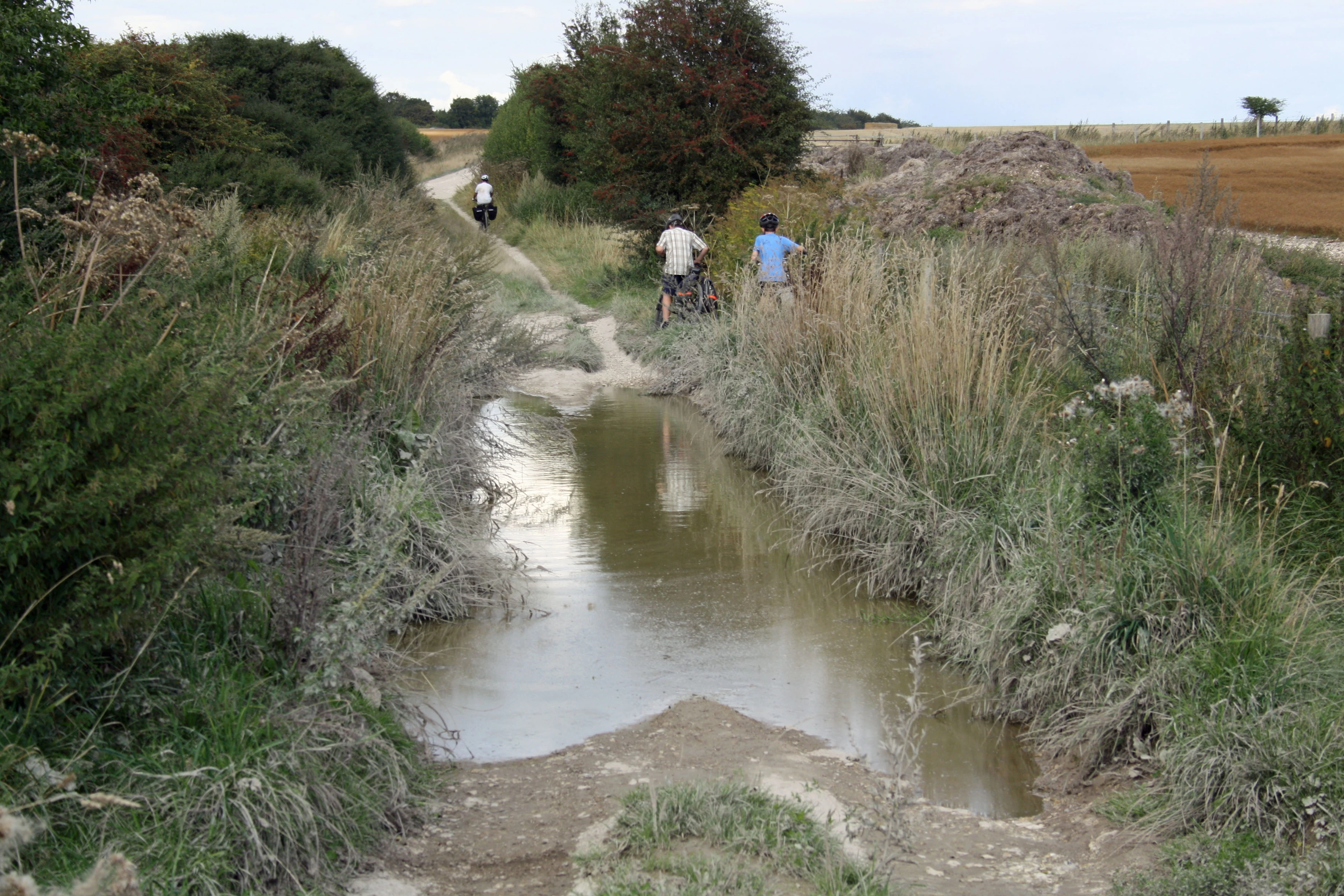 The flooded track over New Court Down towards Odstock.