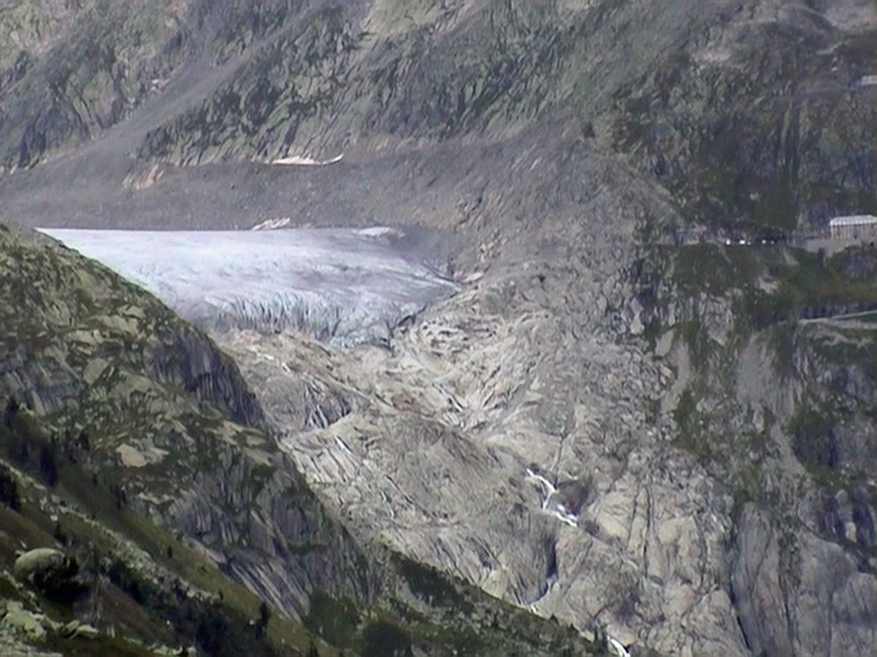 Rhone Glacier from Grimsel Pass viewpoint, 28.2 miles, 2153m. We'll pass it in 90 minutes.