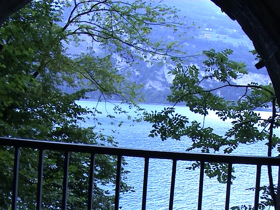 Lake Walen through a window in the Weisswand cycle tunnel.