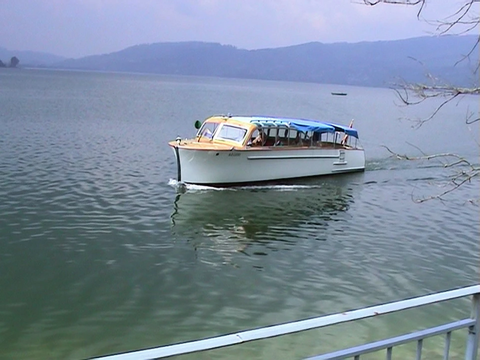 A passenger boat sounds its horn on Lake Ägeri, Morgarten
