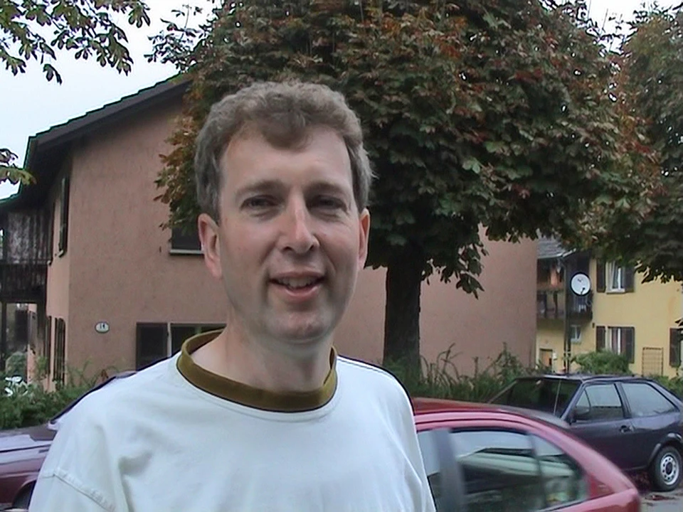 Michael, smug at beating Luke to be ready first, at Lucerne Youth Hostel.