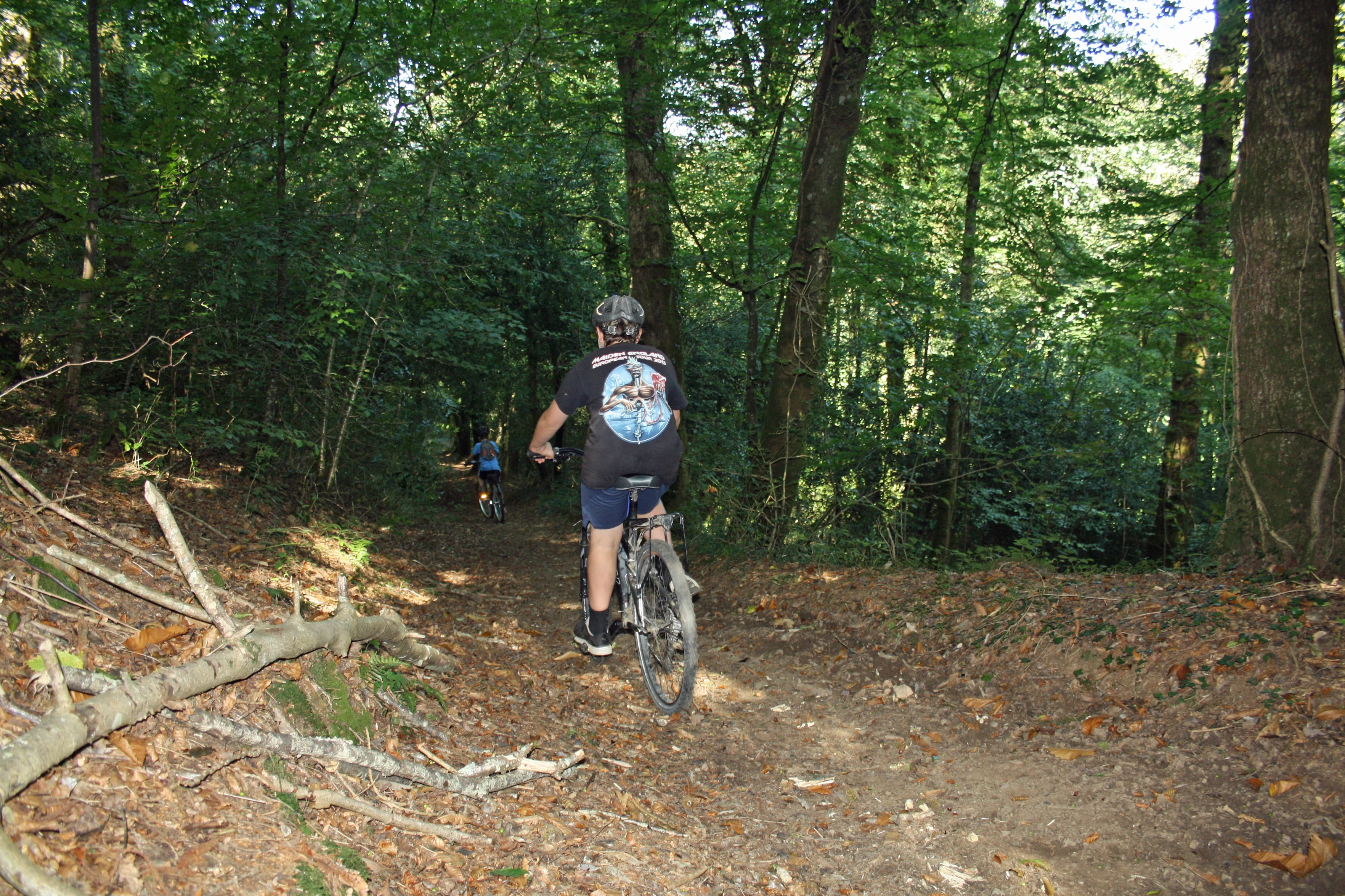 George and Dillan ride the track through Burchetts Wood