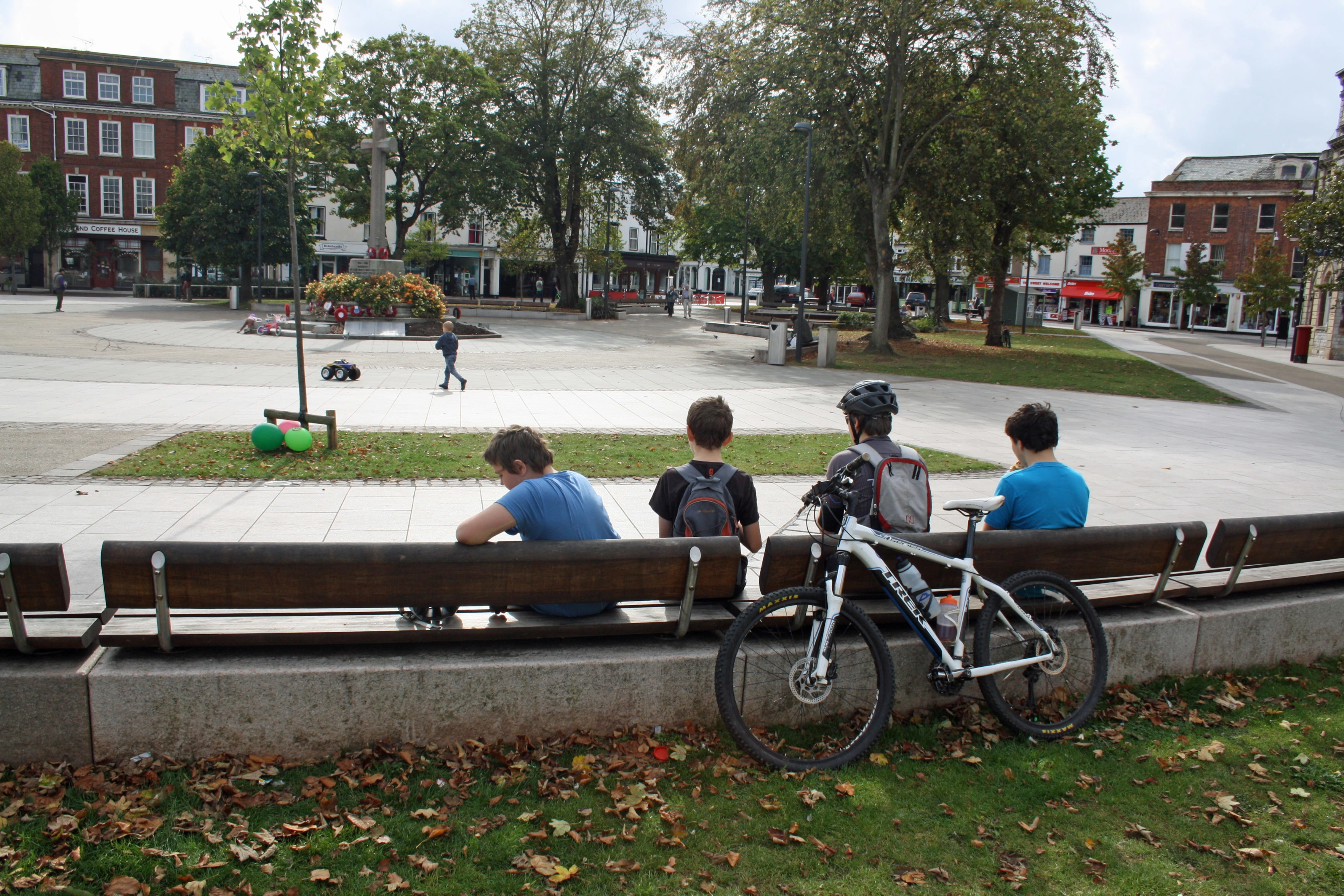 Lunchtime in Exmouth town square.