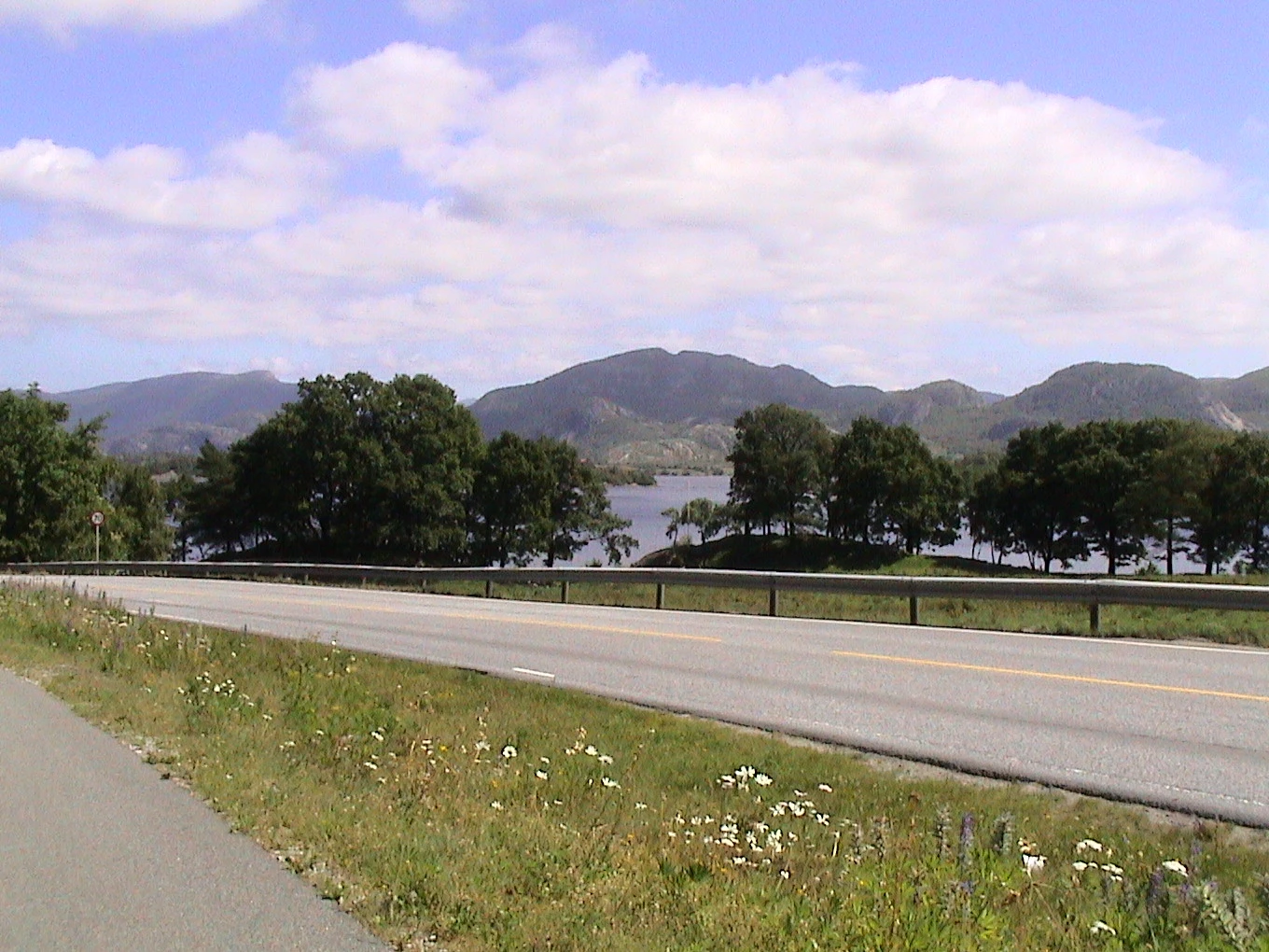 Cycle path along Lutsveien, Sandbakk, with views over Lake Dybmingen.