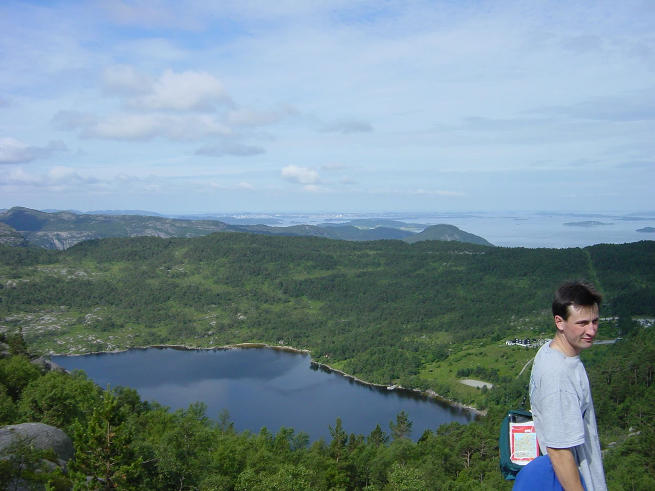 Tao with Revsvatnet behind, en route to Pulpit Rock.