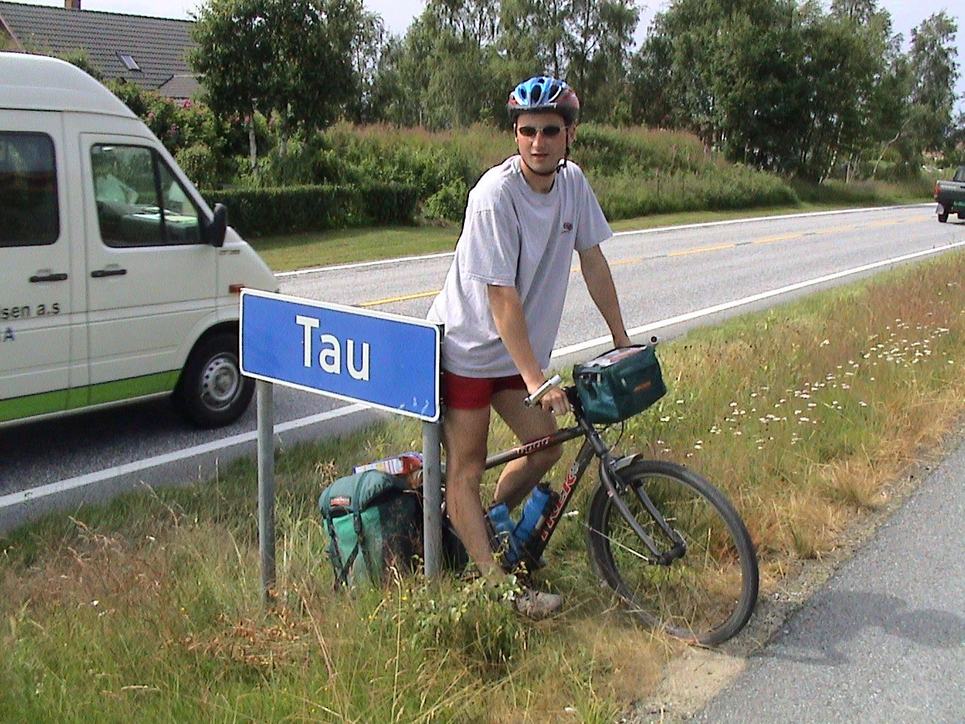 Tao, with his unusual name, poses by equally oddly named Tau - 11.3 miles in.