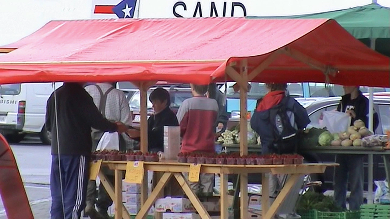 Fresh strawberries at Sand — Michael and Gavin buy a punnet for the evening meal. 27.6 miles.