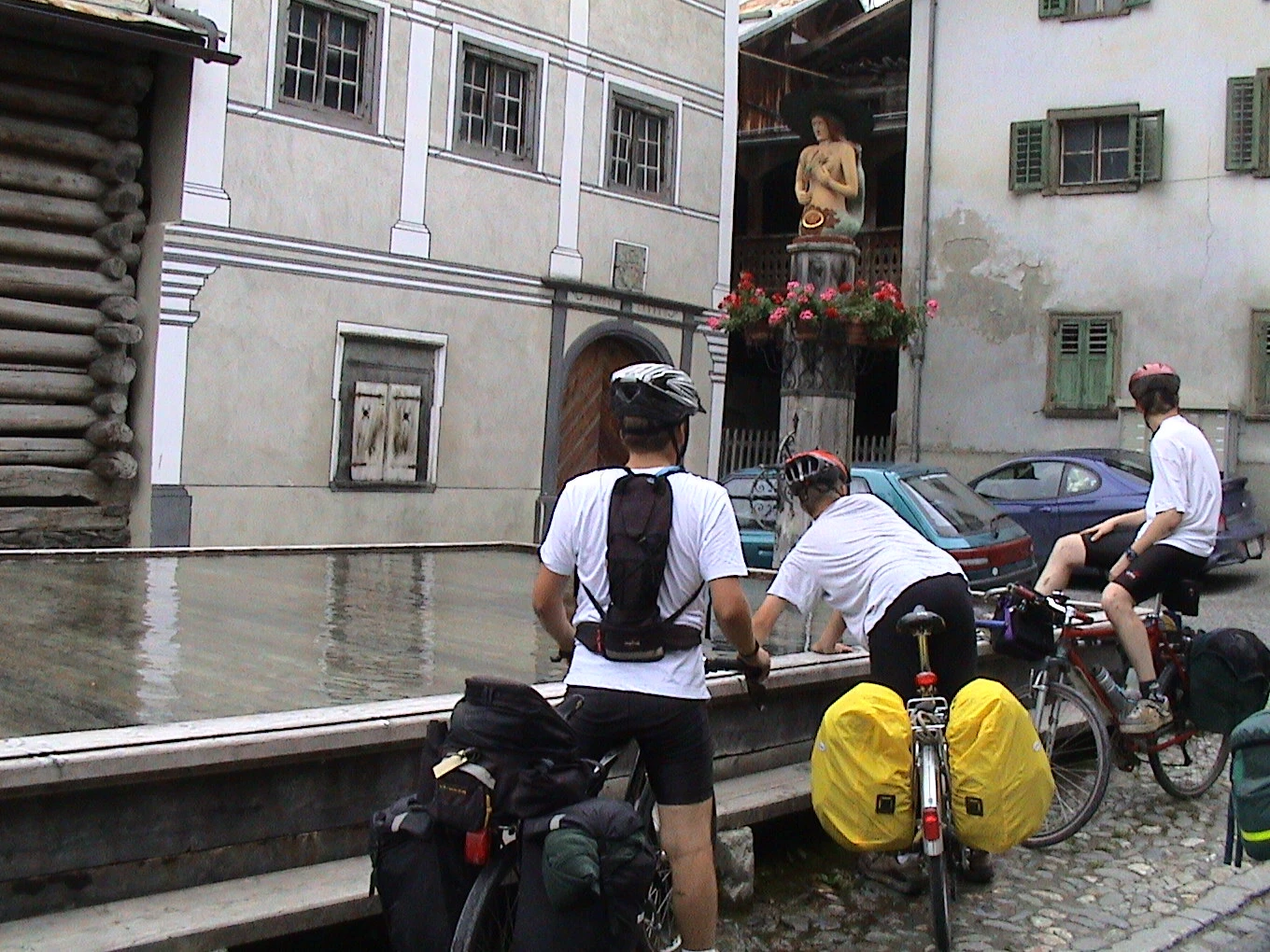 Afternoon water stop at Valendas, home to Europe’s largest wooden fountain. 45.9 miles.