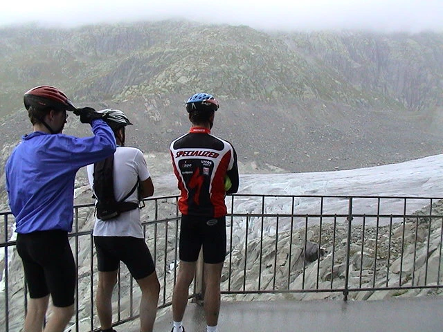 Olly, Luke and Tao get up close and personal with the Rhone Glacier.