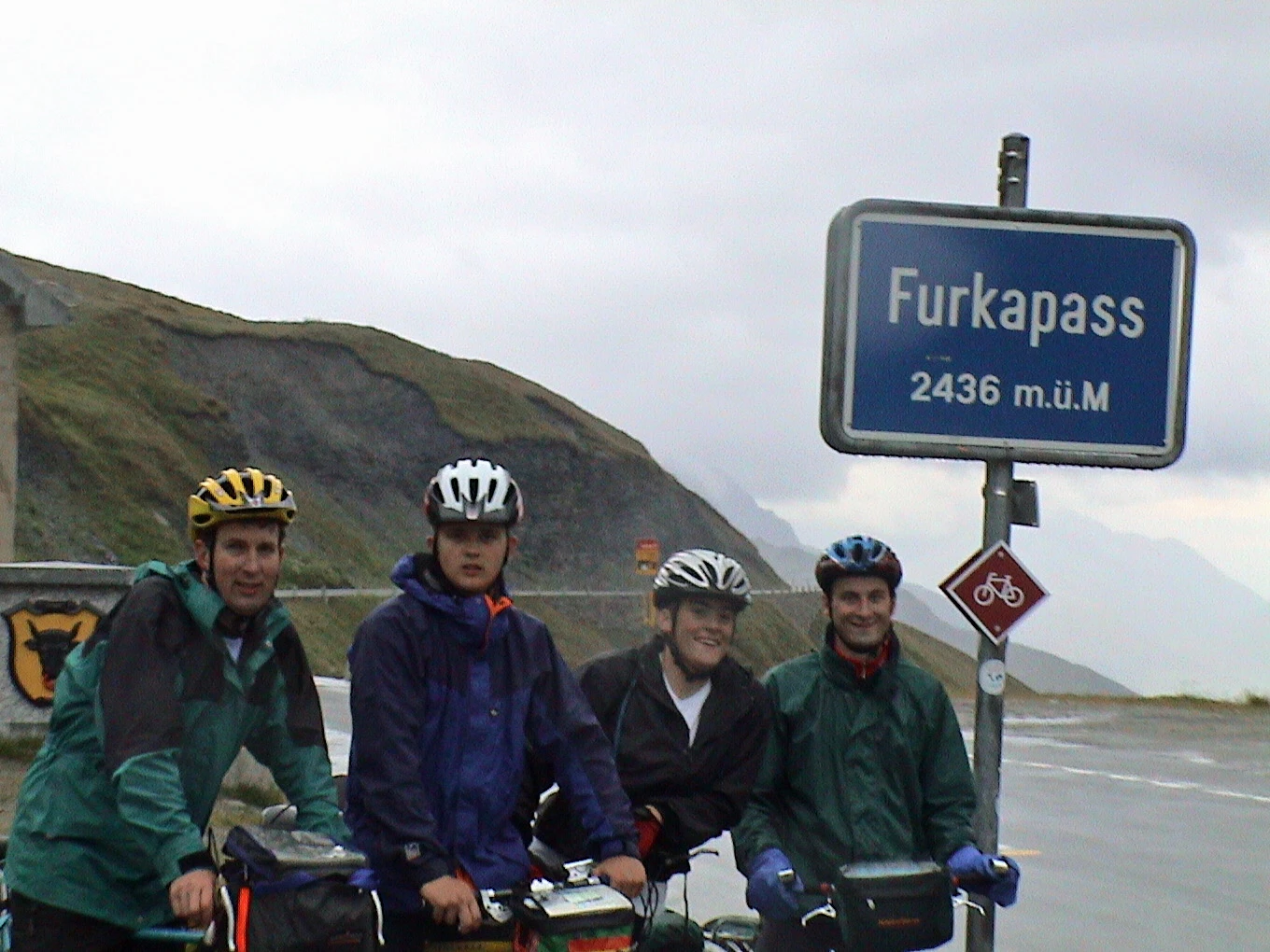 The group at Furkapass, the tour's highest road, 37.9 miles, 2436m.
