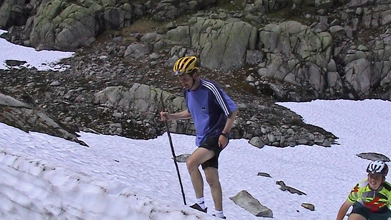 Michael and Gavin trudge back up after their runs at Halvfjerdingsvatnet.