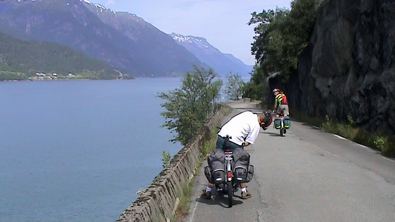 Riding the old road beyond Tyssedal around the Oksla Tunnel, 5.3 miles in.