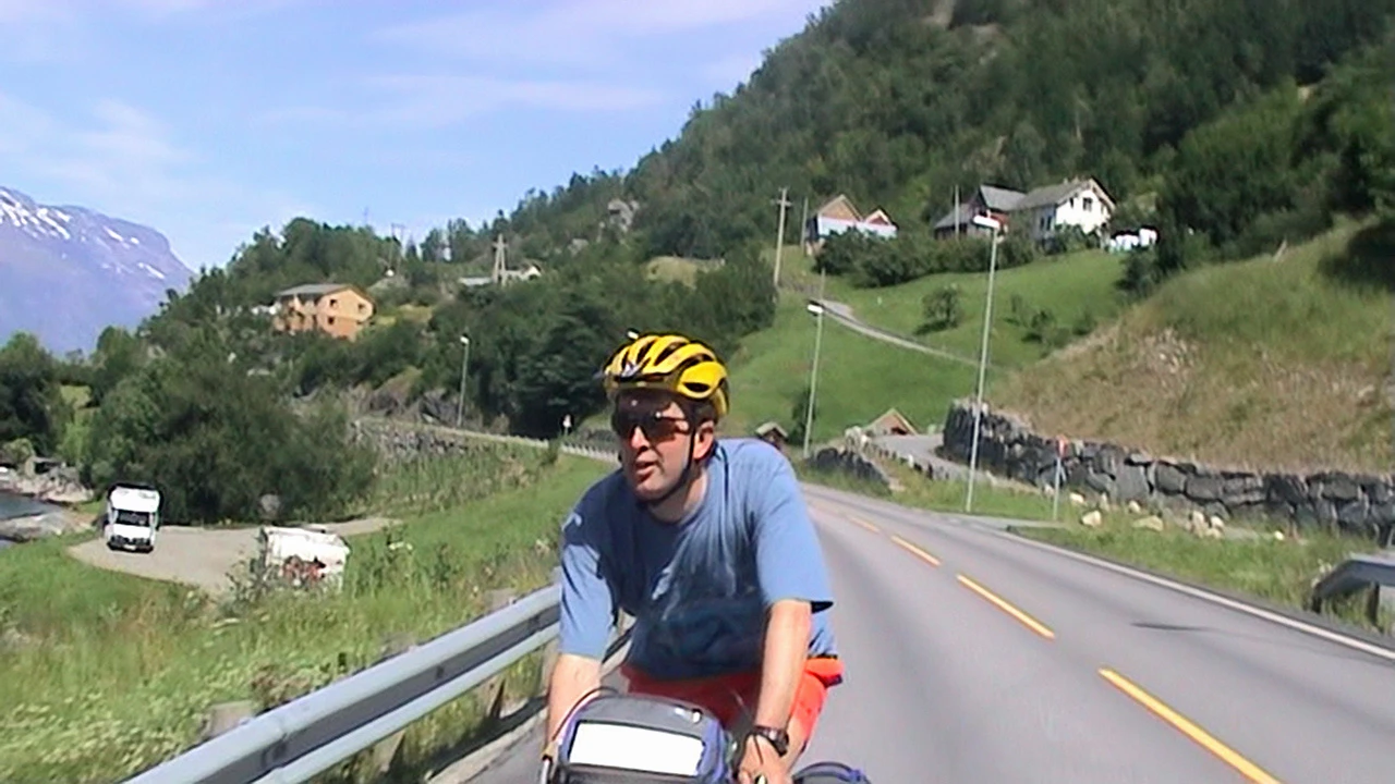 Michael coasts into the Brakavik 'Services' at Fresvik for lunch, 10.1 miles in.