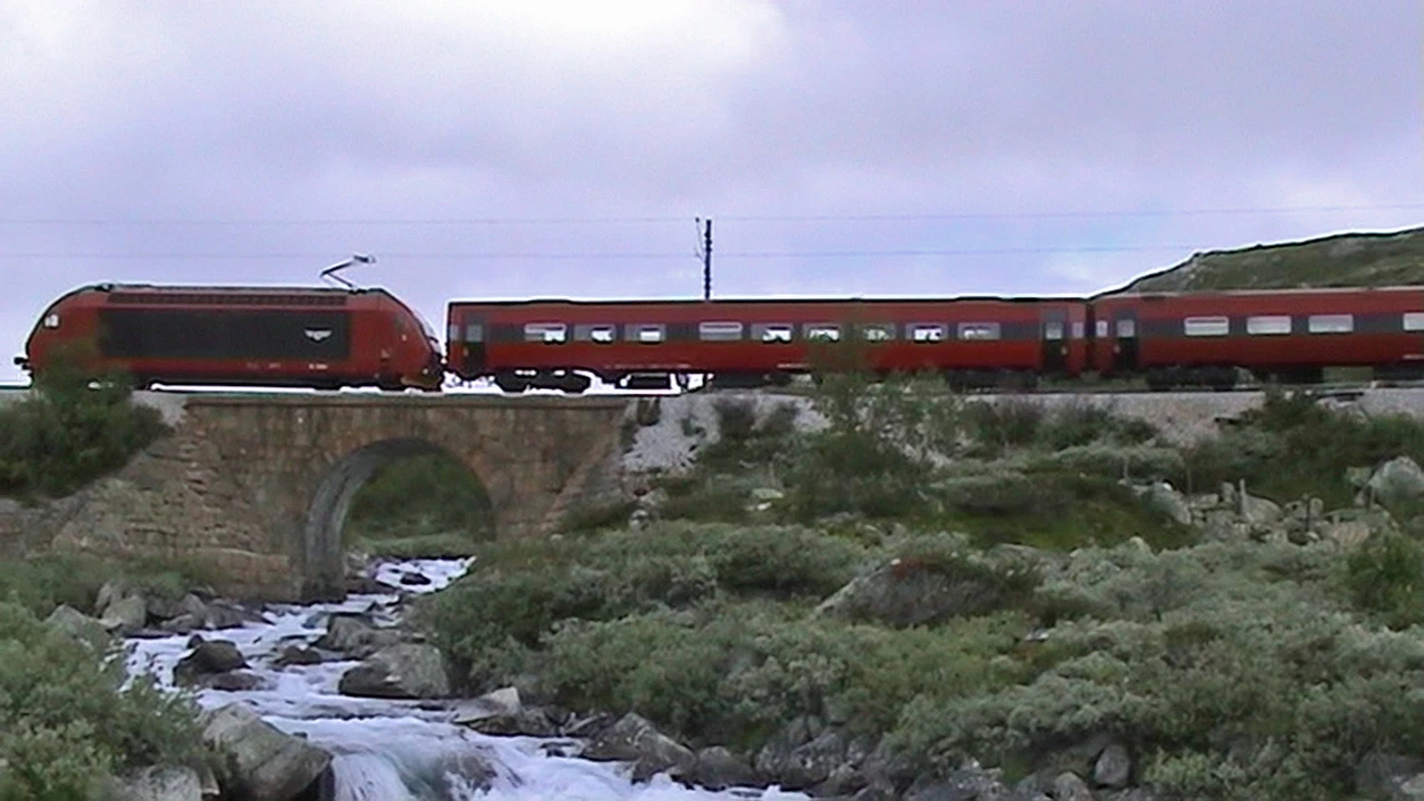 The Oslo-Myrdal line shadows Rallarvegen; this 10:13 from Haugastøl was our rainy-day fallback.