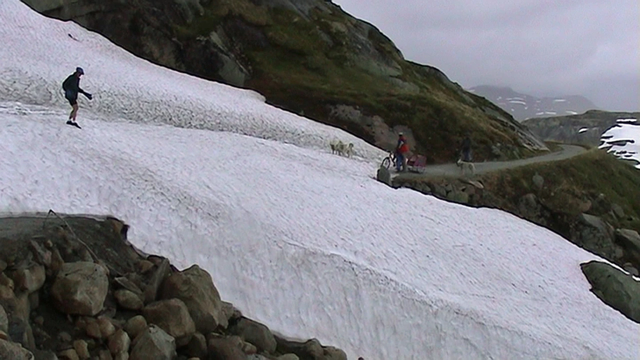 Thickening snow slows us as we near Rallarvegen’s high point.