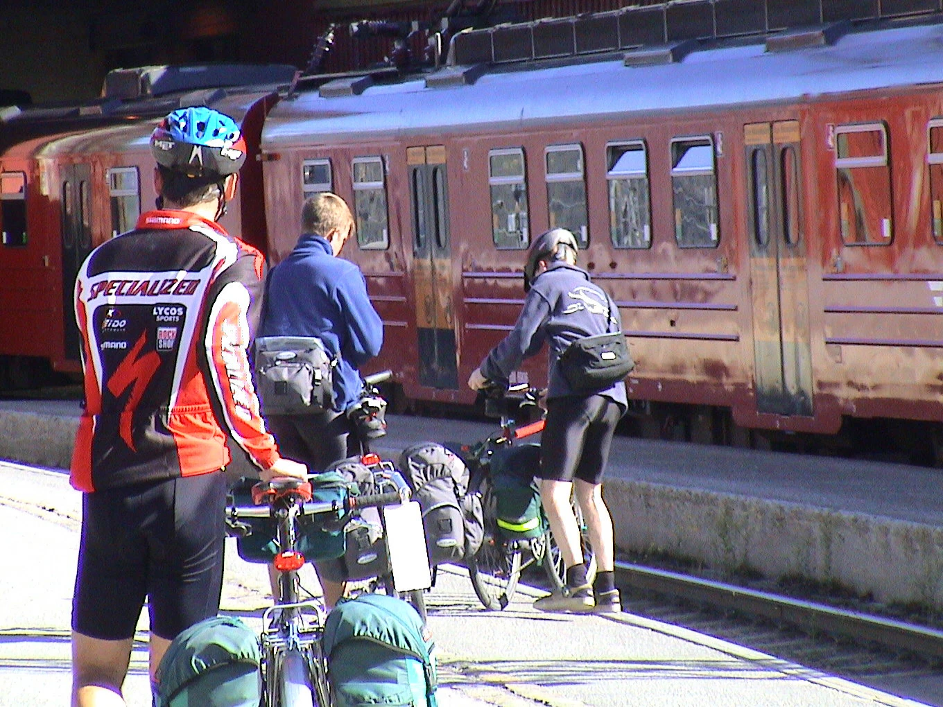 Waiting at Myrdal Station for the tunnel train to Upsete and the Rallarvegen.