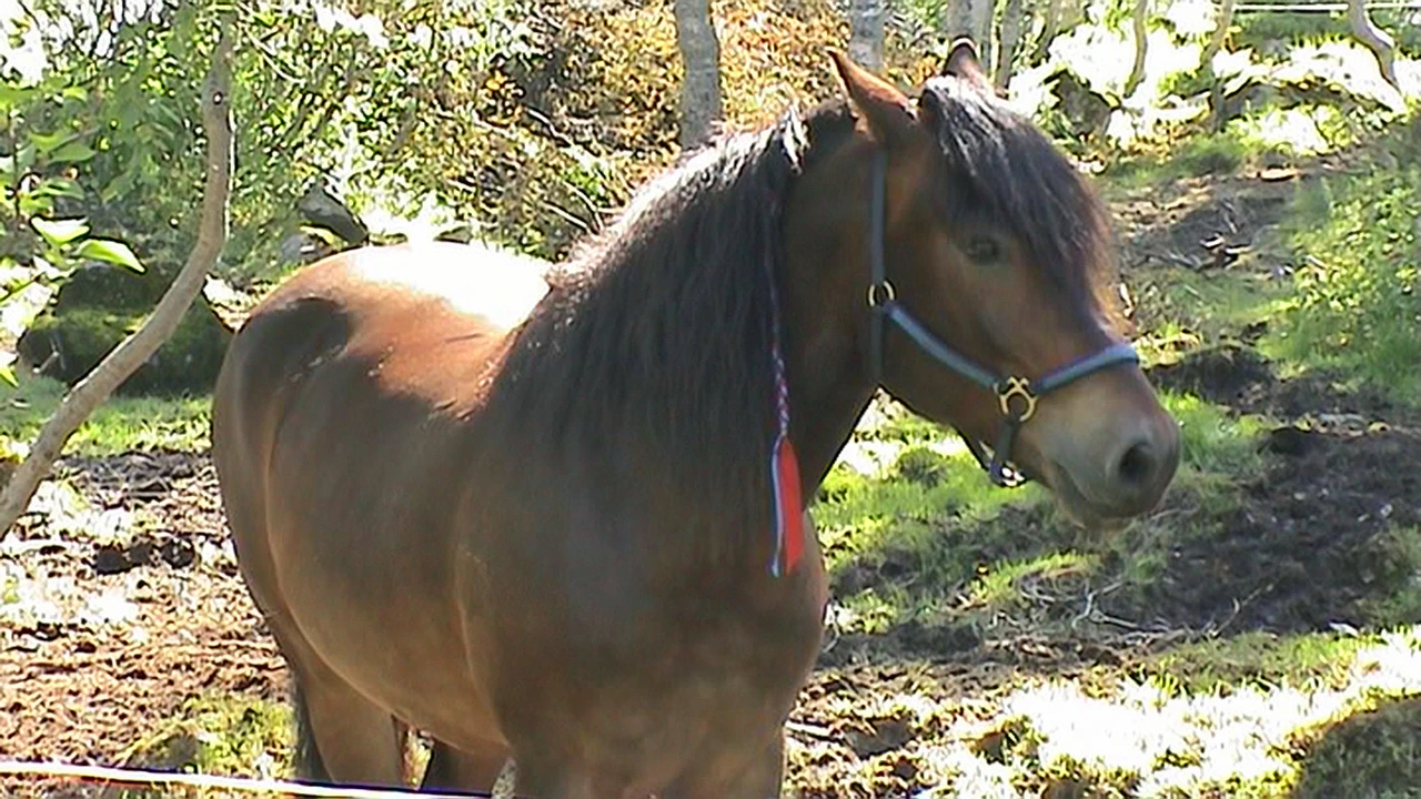 A Norwegian horse opposite Mjølfjell Youth Hostel.