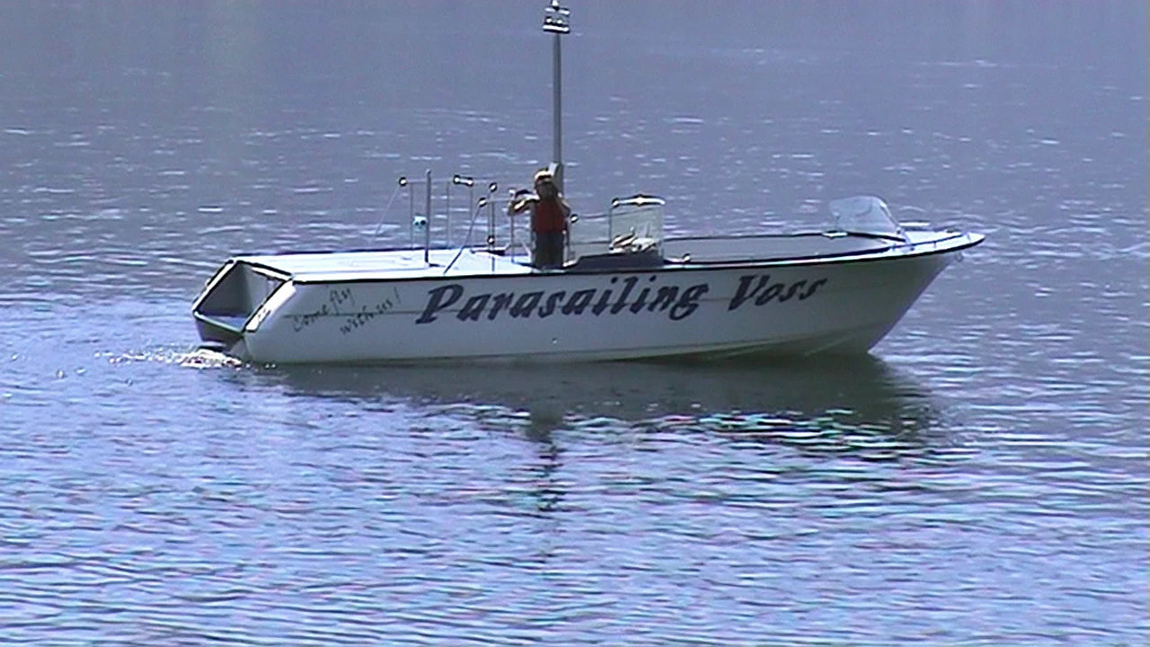 The Voss Parasailing boat on Vangs Lake, Voss.