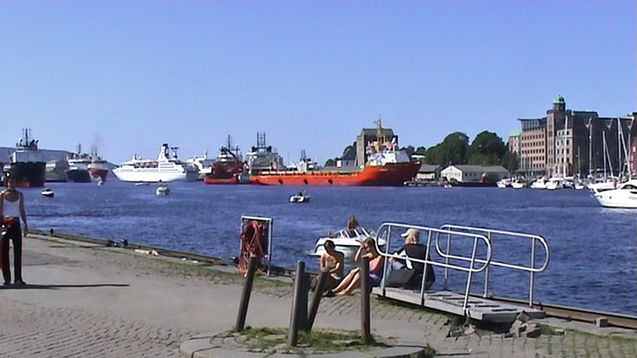 Strandkålen, Bergen, looking across to cruise ships at the ferry terminal.