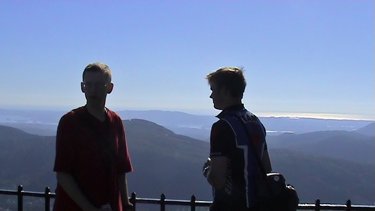 Olly and Gavin at Mount Ulriken's upper cable car station, Bergen.