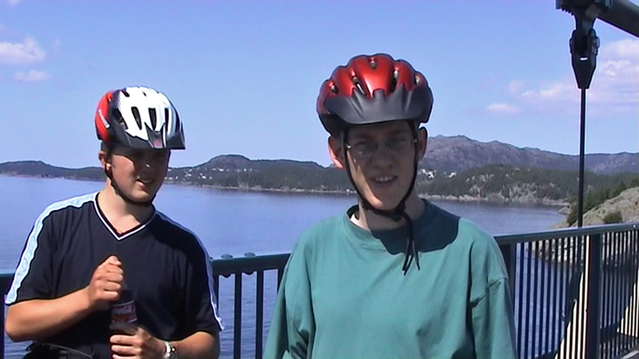 Gavin and Olly on the 1,078 m Storda Bridge.