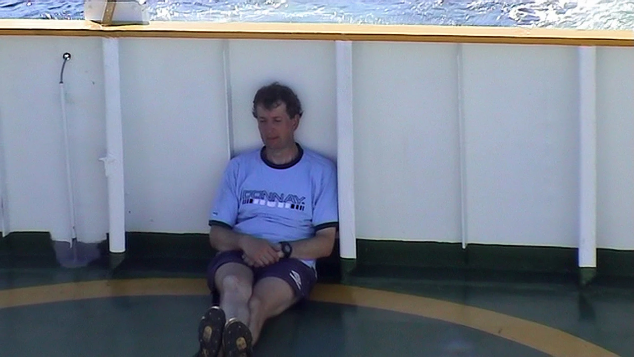Michael luxuriates in another cool, shady spot on the Langevåg–Buavåg ferry.