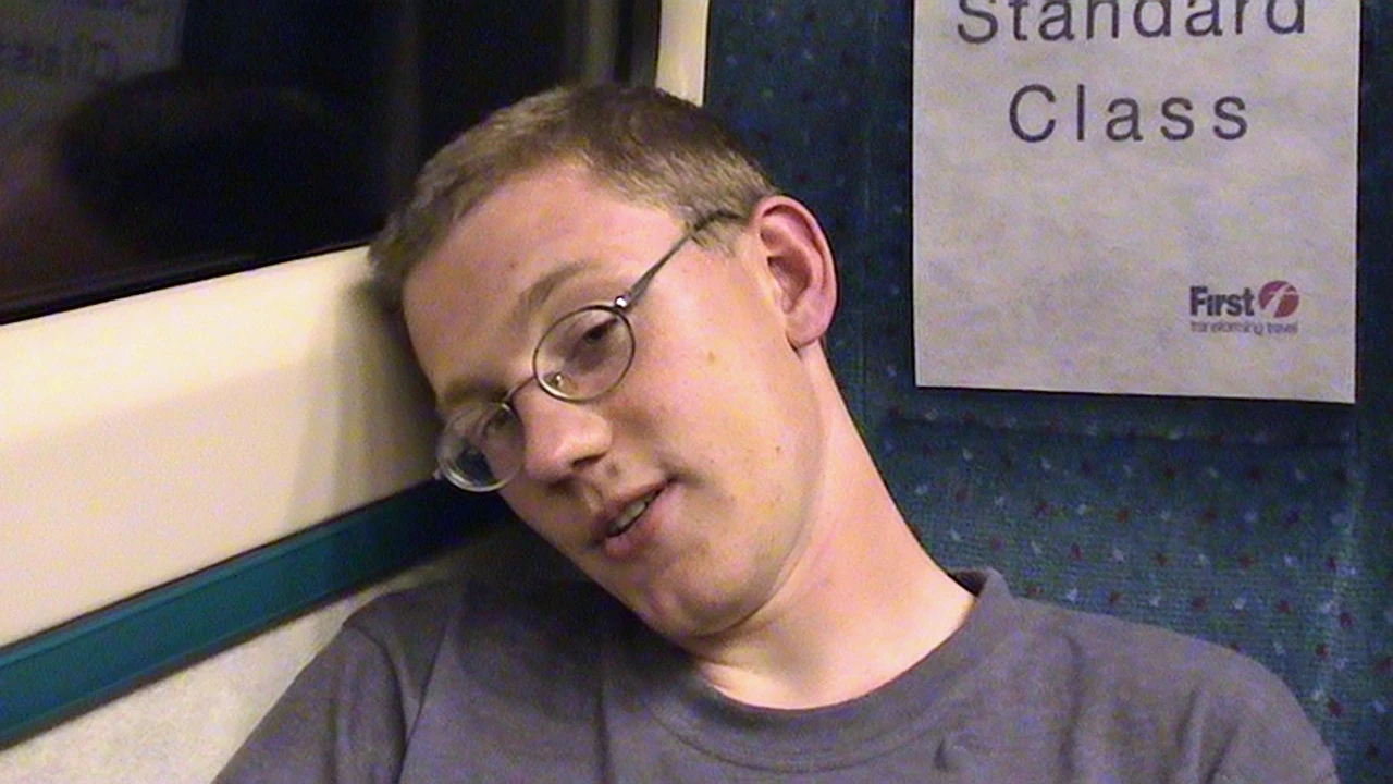 Olly, shattered on the late train from Paddington to Exeter.