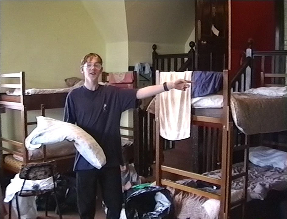 Oliver in the Spook Room—our dorm—at Carbisdale Castle YH.
