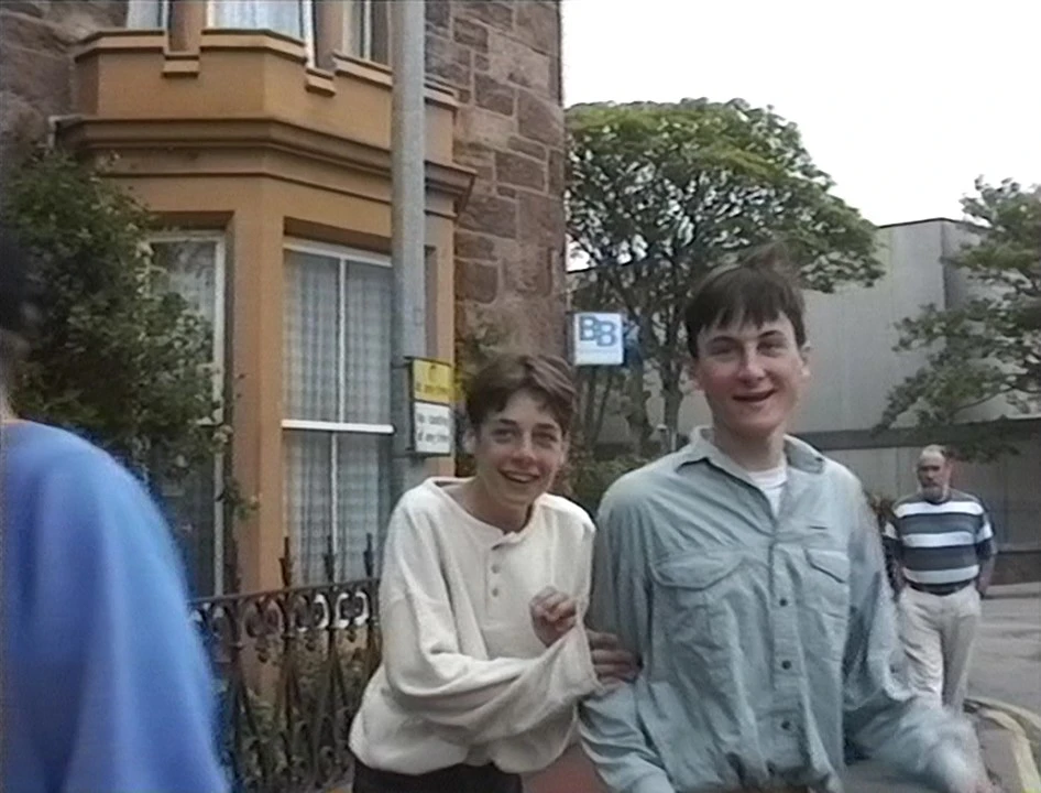 Eliot and Tao outside the Tower Guest House, 32 James Street, Stornoway