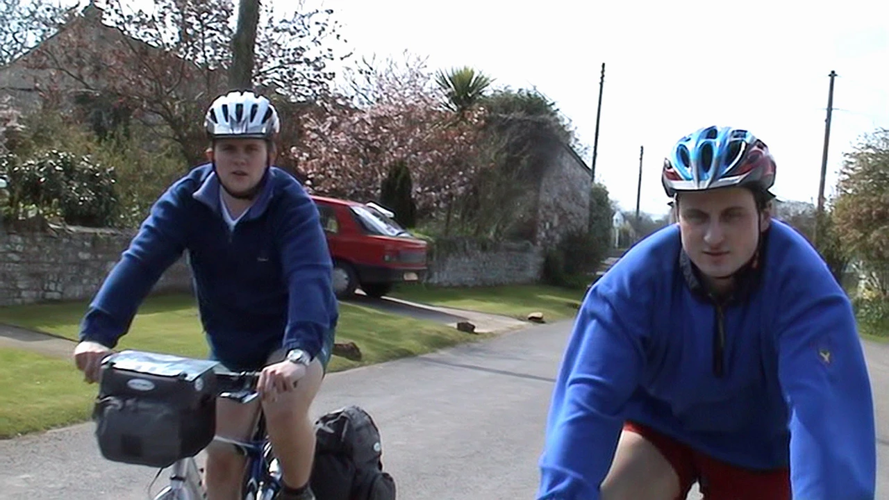 Gavin and Tao rejoin the group in Ham after a 'widdle break', 5.8 miles from Taunton