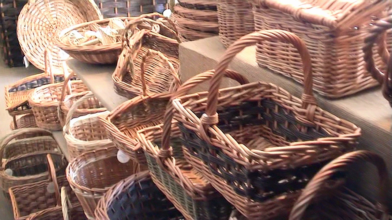Willow baskets on sale at the Willows and Wetlands Centre, Meare Green