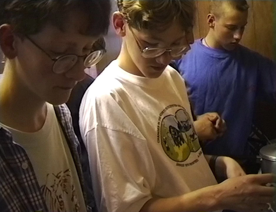John Hayes, Oliver Lindley, Luke Whiting and Nick Green slaving over hot stoves at Raasay YH