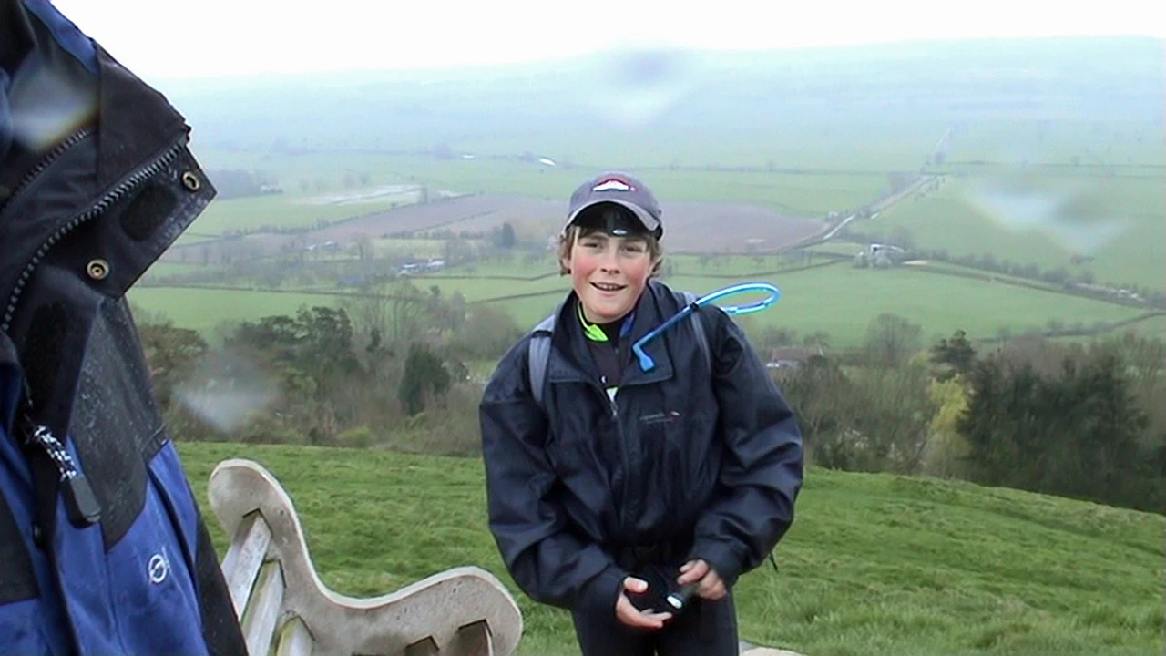 James hands round chocolate éclairs on the slog up Glastonbury Tor.