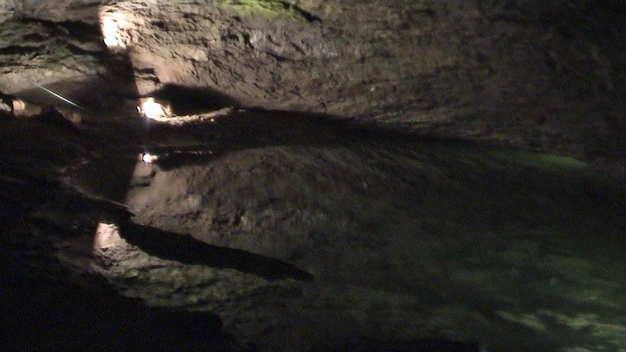 Inside Wookey Hole Caves—13.5 miles into the ride.