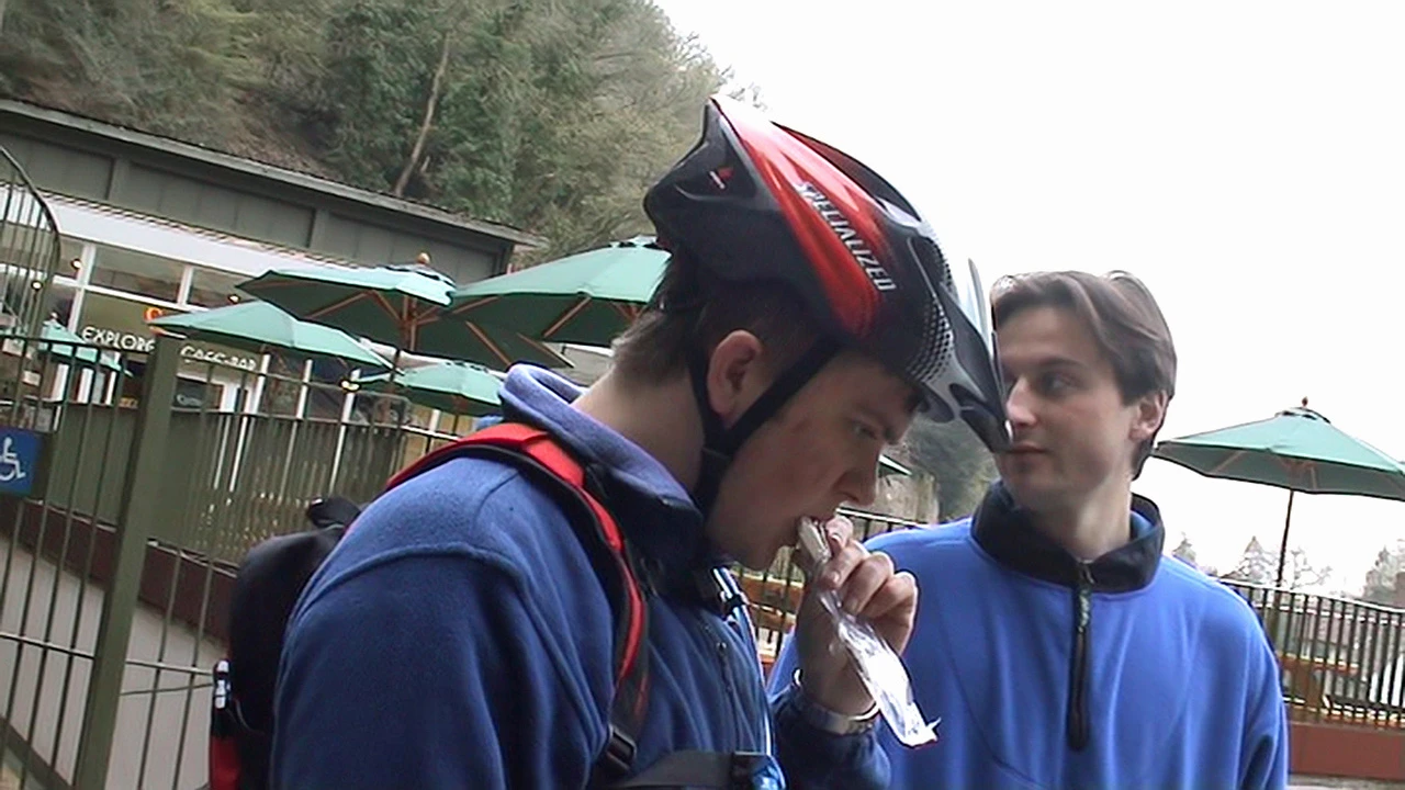 Gavin and Tao outside Gough’s Cave, Cheddar