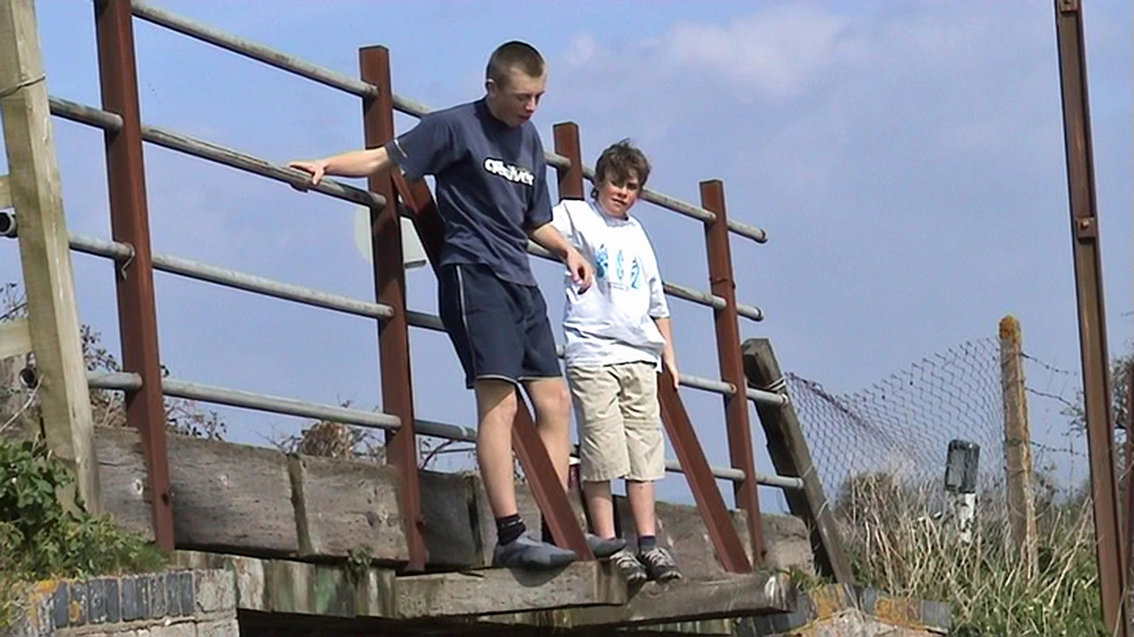 Ashley and James on the Cripps River bridge at our lunch spot near East Huntspill