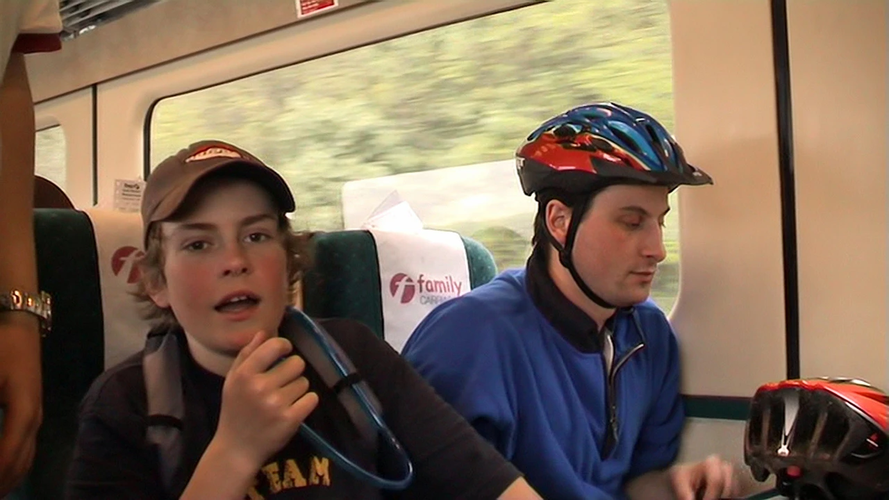 James and Tao on the train approaching Newton Abbot