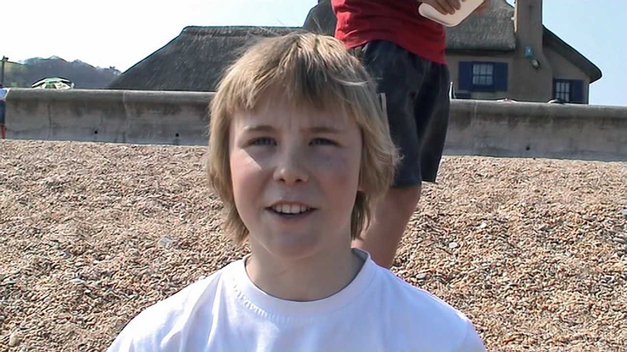 Louis on Slapton Sands at Torcross, 19.2 miles in, declaring he's 'out of energy'.