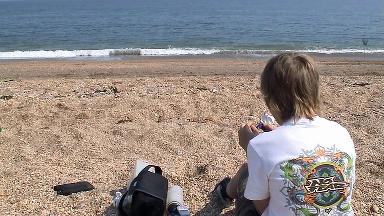 Louis at Torcross, Slapton Sands, 19.2 miles in.