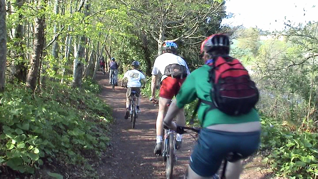 Following the riverside path at Totnes, between Brutus Bridge and the railway bridge. 34.2 miles in.