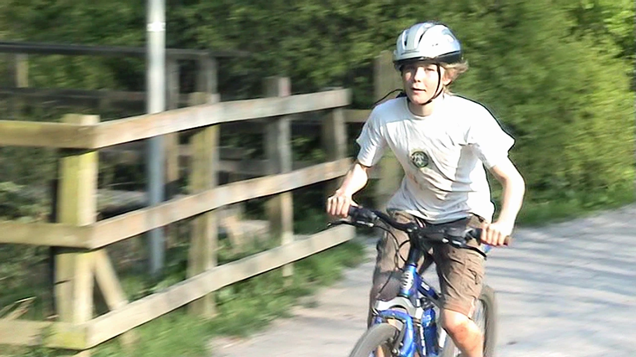 Louis on the Totnes Cycle Path near Totnes Weir. 34.6 miles in.