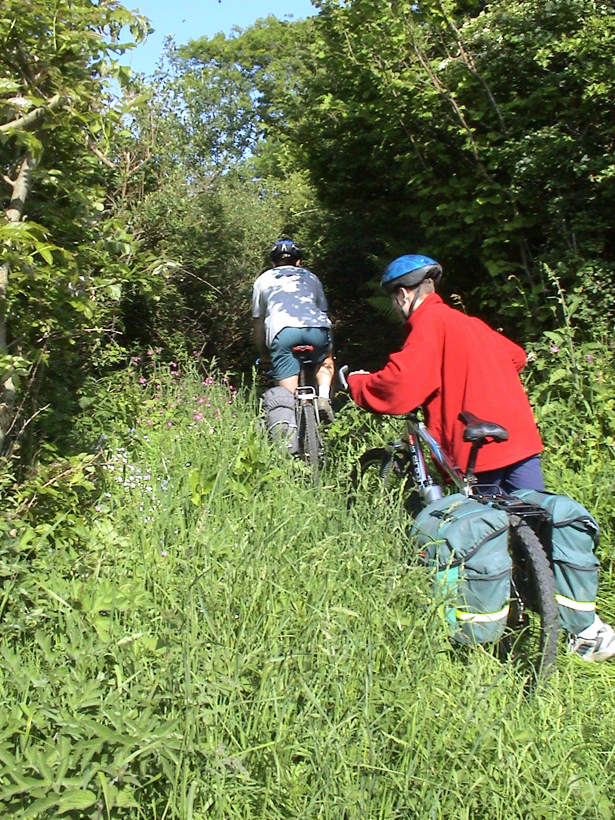 Tao and Will dive into the overgrown track past Lower Reveton, Loddiswell.