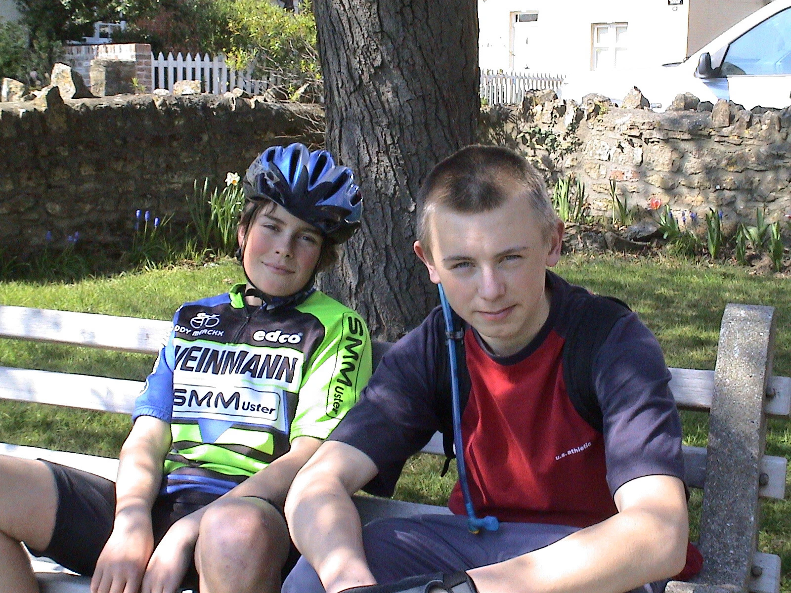 James and Ashley at Queens Square, North Curry, lunch stop, 8.2 miles from Taunton