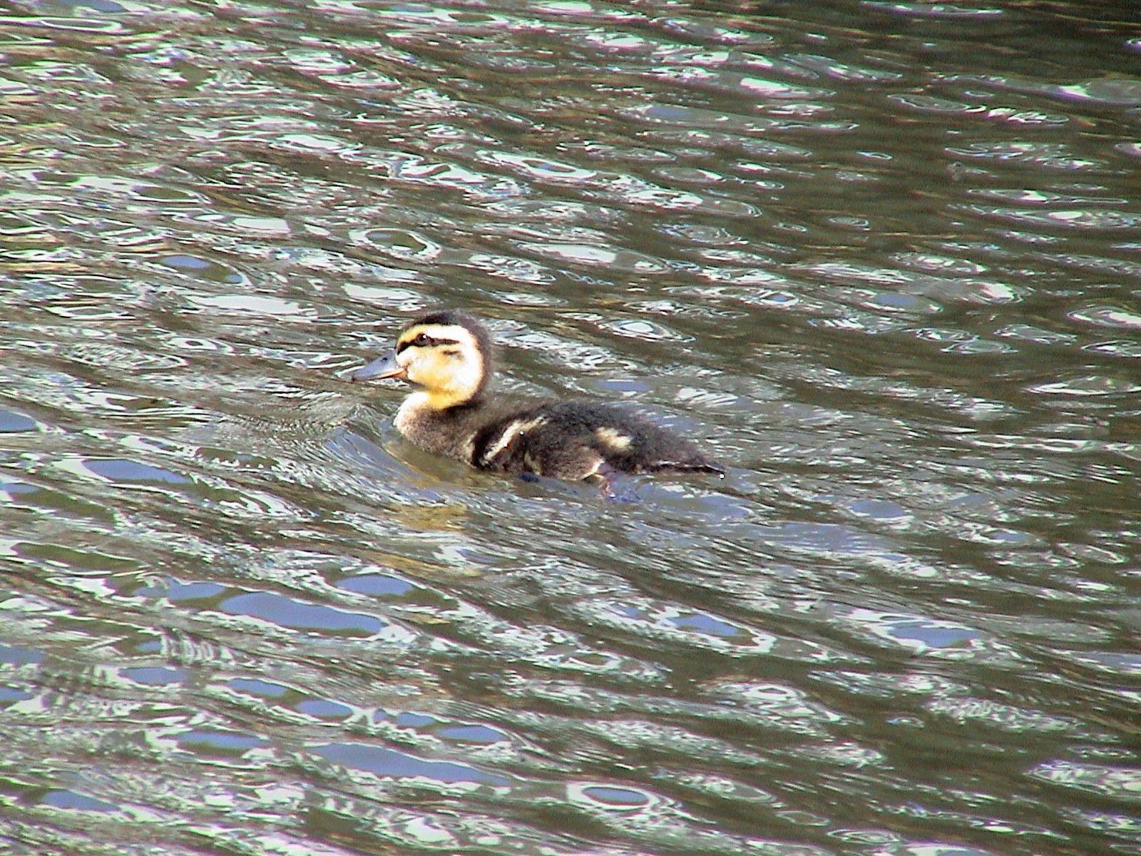 One lively duckling in the Tides Reach Hotel pond, South Sands.