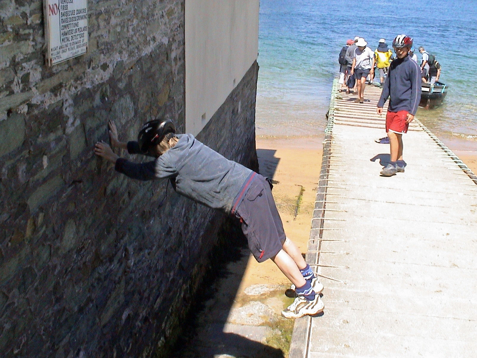 The second group disembarks at East Portlemouth as Louis performs for the camera.
