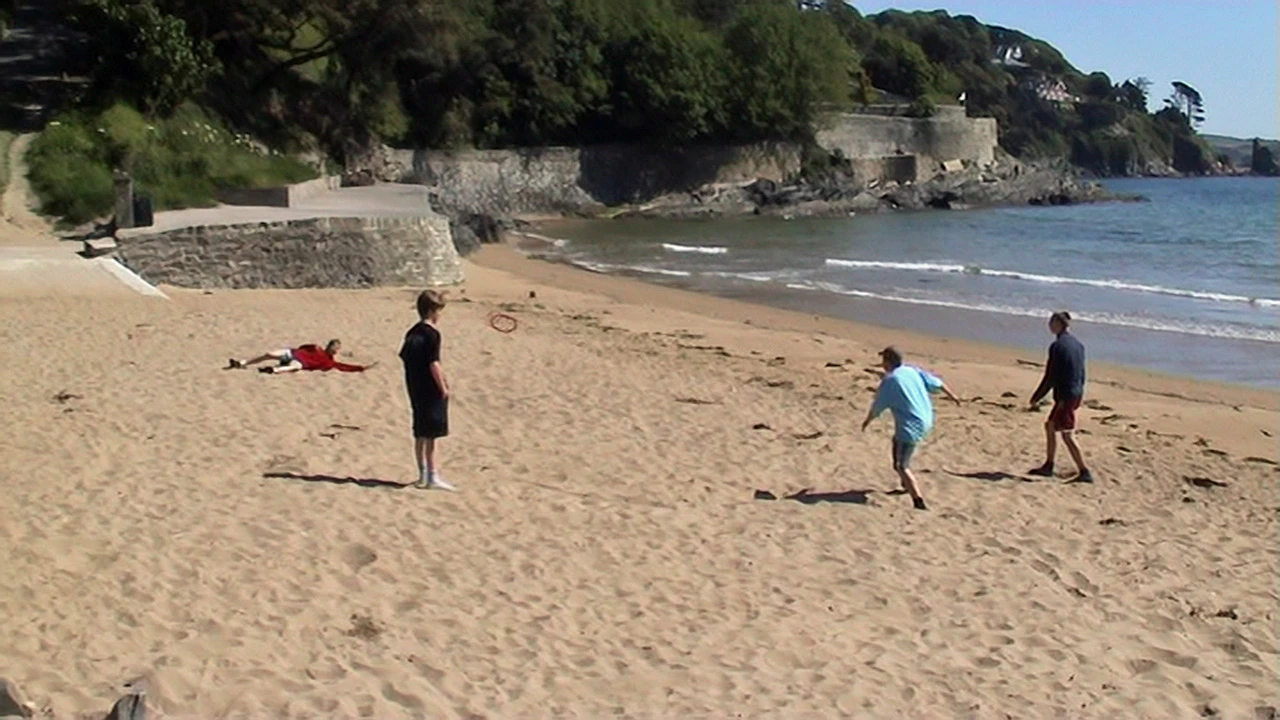 Frisbee fun on South Sands Beach, half a mile below the hostel.
